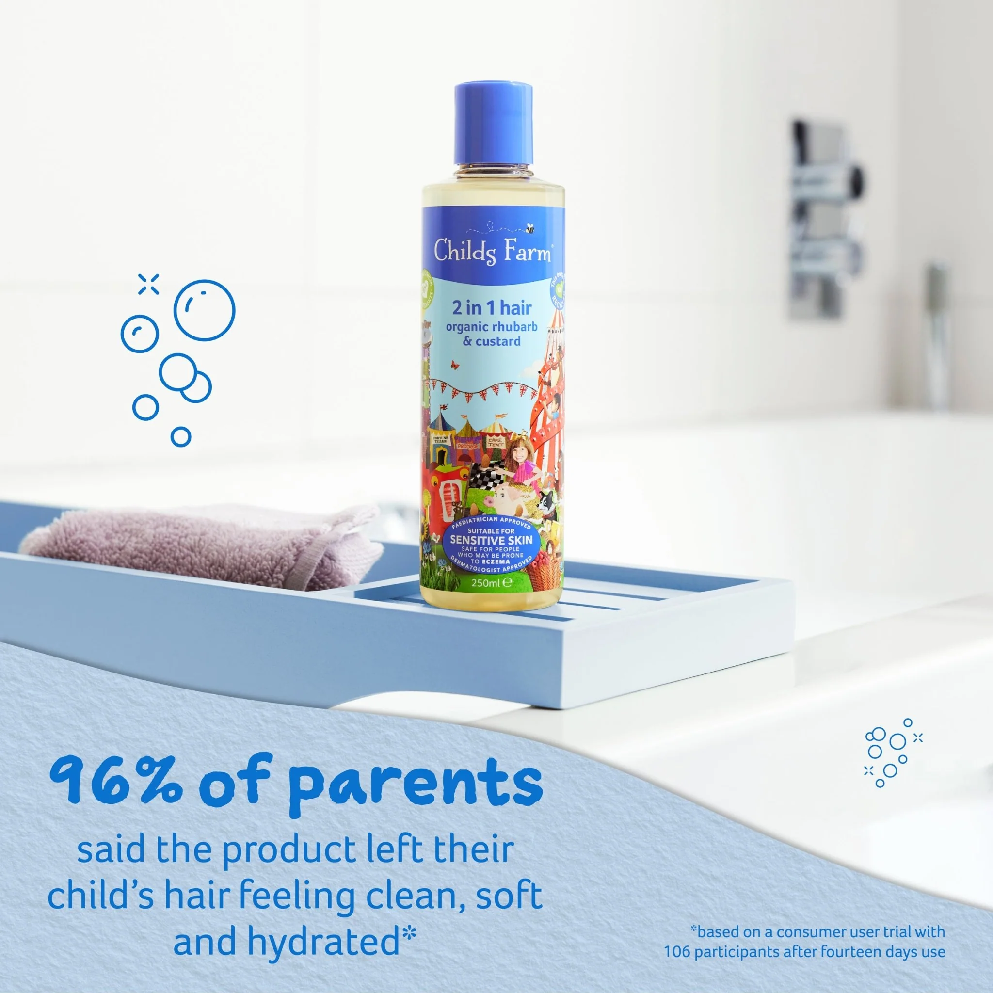 Looking for a time-saving haircare solution? Have no fear, Childs Farm is here! Our 2 in 1 shampoo & conditioner organic rhubarb & custard is the superhero that washes and conditions all hair types using just one product.